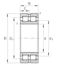 洛陽百潤斯SL0149系列軸承,為無密封軸承,外圈是整體剖分式的,由連接鎖片固定在一起。因此外圈不能承受軸向負荷,剖分后的外圈完全一樣,各帶一個擋邊,可以作兩個方向的軸向定位,內圈帶有三個擋邊。外圈帶有油溝及三個潤滑孔,此系列軸承通常為油潤滑。