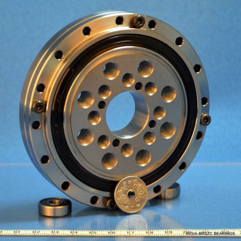 CSF/CSG系列諧波減速器專用交叉滾子軸承(型號CSF-XRB系列)采用外圈分體,內圈整體型結構,與標準交叉滾子軸承不太一樣的是,內外套圈上加工有多層精密安裝孔,尤其是內圈,從外到內一般有三層不通尺寸和數量的安裝孔,這樣的設計使軸承能夠與產品工作部件直接連接,簡化安裝方式和步驟。洛陽百潤斯軸承有限公司生產的諧波減速器專用交叉滾子軸承材質采用GCr15軸承鋼(100Cr6),配合特殊的熱處理工藝,及行業先進的機加工技術,軸承精度高,結構緊湊,密封好,承載能力強,剛性高,可保證諧波減速機的使用效果和壽命。