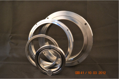 薄壁交叉圓柱滾子軸承的滾動體(圓柱滾子)在滾道中呈十字交叉分布,相鄰滾子間通過隔離塊或保持器彼此分開。這種設計使得單個軸承能夠同時承受徑向,軸向和傾覆載荷。滾子之間的隔離塊可以防止滾子的傾斜或滾子之間的相互摩擦,因此有效地防止了摩擦力矩的增加。此外,交叉滾子軸承的設計還可以避免滾子卡住的情況。